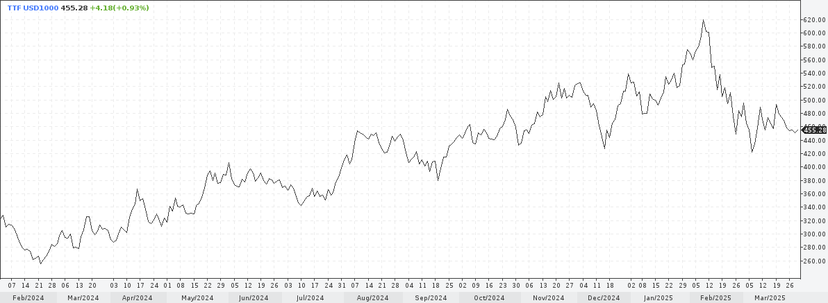 Цены на спот-газ в Европе в первом квартале 2025 года продолжали рост до середины февраля, достигнув на пике 620 долларов за тысячу кубических метров. Одной из причин данного ралли стало прекращение поставок российского газа через Украину, а также атаки Украины и отдельных НАТО на трубопровод “Турецкий поток”.