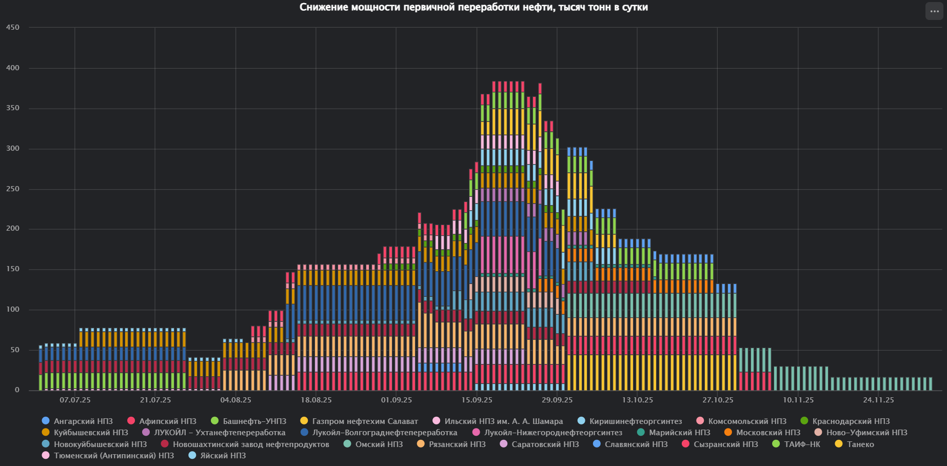 Оценка простоев мощностей первичной переработки нефти в России в детализации по НПЗ